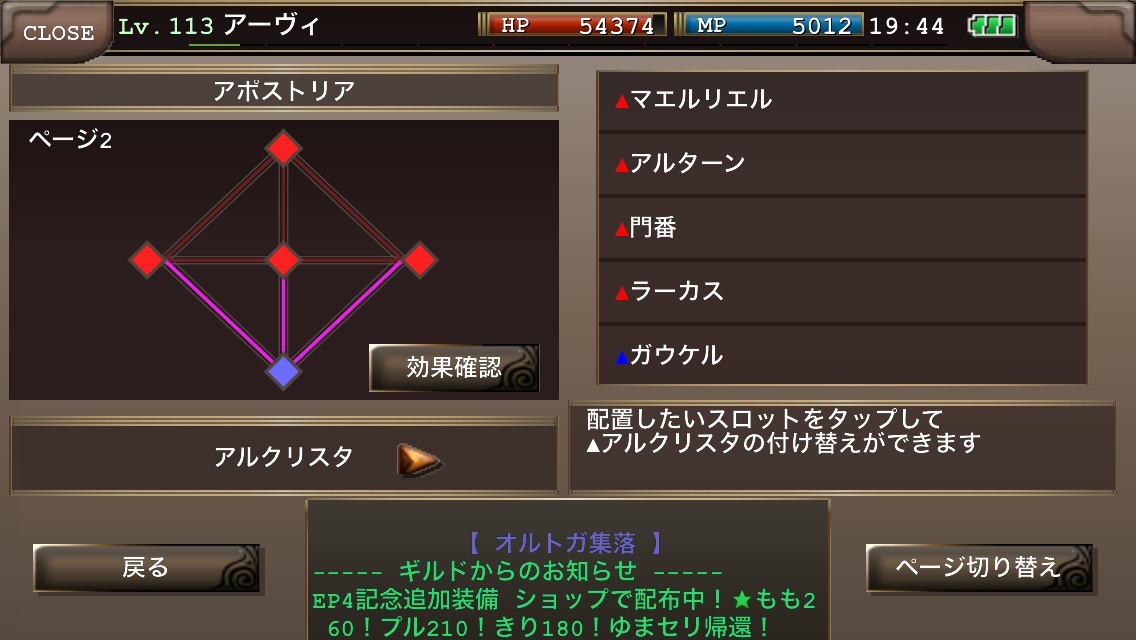ほか注意すべき点としては、効果が現れるのは、現在設定しているページに装着しているアルクリスタ群に限られる。